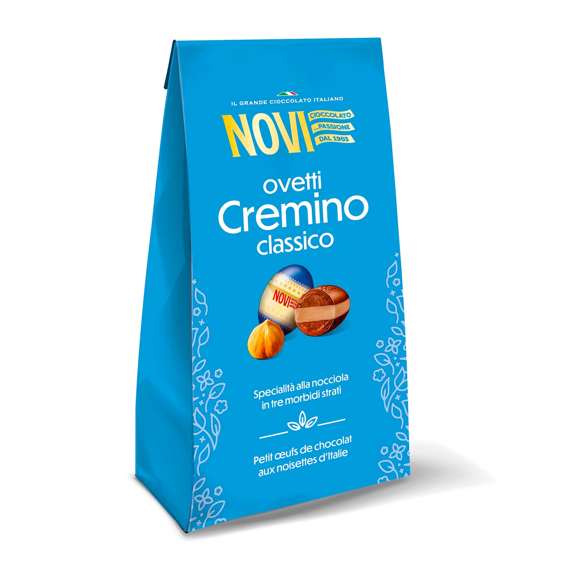 Spécialités de Novi en trois couches moelleuses de chocolat aux noisettes, les Oeufs Cremino vous accompagneront pour une délicieuse Pâques grâce à leur goût incomparable.